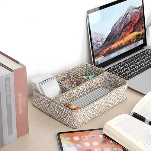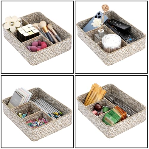 BTSKY Desk Drawer Organizer Tray, Coffee Station Organizer Tea Bag Organizer For Countertop/Desk/Shelf Decorative, White