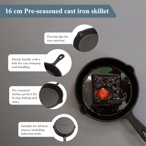 Buckingham Pre-seasoned Premium Cast Iron Skillet Frying Pan Suitable for Induction Electric Gas Oven Safe Ideal for BBQ Grilling Cast Iron Pan for Low Fat Healthy Cooking 16.5 Cm