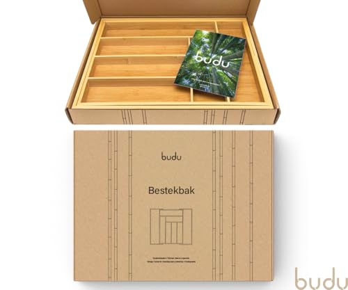 budu Cutlery Tray #43 (Depth 43 cm) Made of Bamboo – Drawer Organiser System for the Kitchen – Cutlery Tray for Bamboo Drawers – Extendable – Kitchen Drawer Organiser