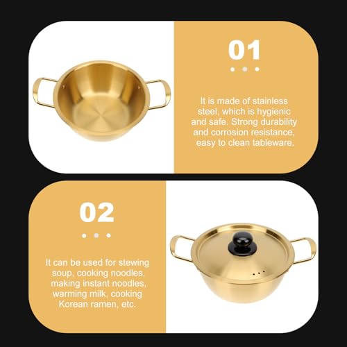 Cabilock 18cm Korean Ramen Pot – Stainless Steel Noodle Soup Pot with Lid and Double Handles for Induction and Open Flame Cooking
