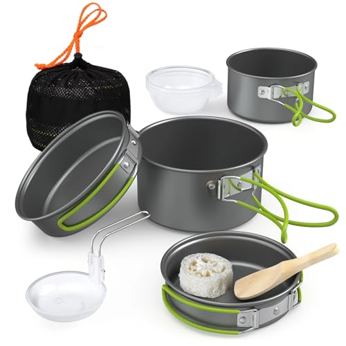 Camping Cooking Set, Aluminium Alloy Non-stick Camping Pots and Pans with Handle, Portable Stackable Camping Cookware with Mesh Bag for Outdoor Camping Hiking Picnic, Camping Pans