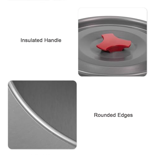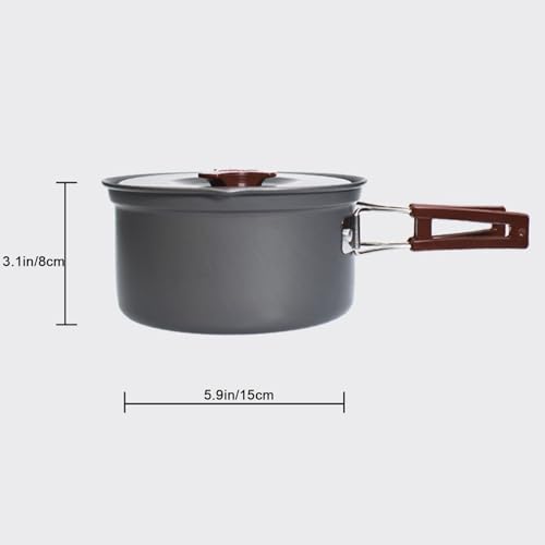- 【Compact and Lightweight】Camping Cookware, offering an ideal solution for boiling water and cooking food outdoors, folding handles with Thermally Insulated plastic handles for convenient carry and ease of storage. Note: Please do not put the handle of the pot on the fire directly, which may burn the handle.