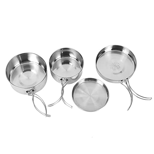 • Camping Cookware Set Stainless Steel Camping Pots and Pan Portable Cooking Mess Set for Picnic 4 Pcs Pots, Pans and Griddles