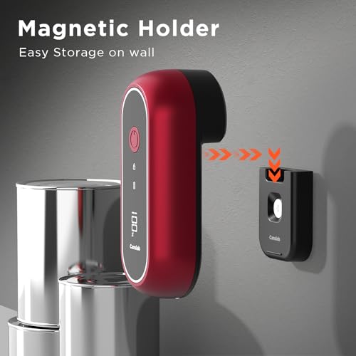 Canslab Turbo – Auto Shut Off Rechargeable Electric Can Openers – LED Battery Display USB Automatic Can Openerfor Kitchen for Seniors with Arthritis – One Touch Side Cut Can Opener Smooth Edge, Red