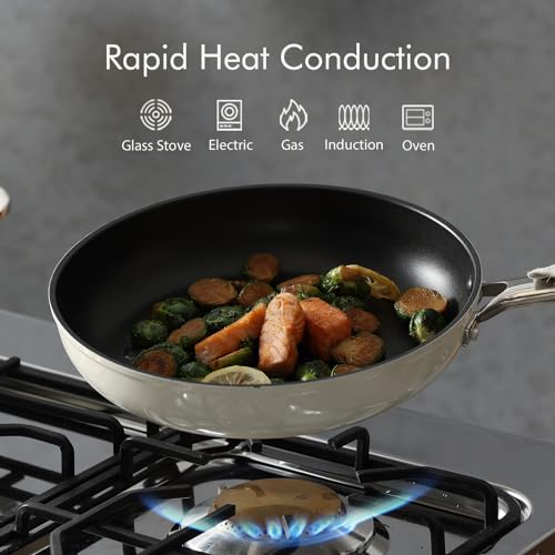 - 𝗘𝘅𝘁𝗿𝗮 𝗗𝘂𝗿𝗮𝗯𝗹𝗲 𝗡𝗼𝗻𝘀𝘁𝗶𝗰𝗸: Say goodbye to sticking, chipping, and flaking, as our revolutionary technology ensures a flawless cooking surface that withstands the test of time.