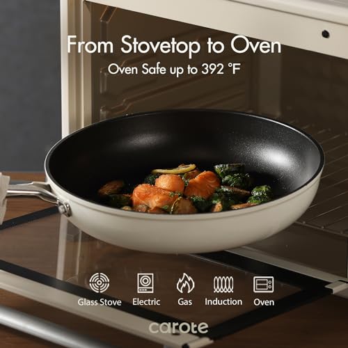 CAROTE 7Pcs Nonstick Kitchen Cookware Set, Premium Pots and Pans Set Non Stick, Heavy Gauge Stainless Steel Pan Set with Frying Pans, Saucepan, Oven Safe Up to 500¡ãF, White