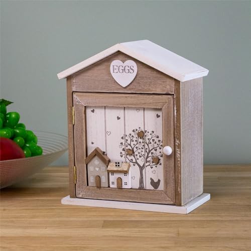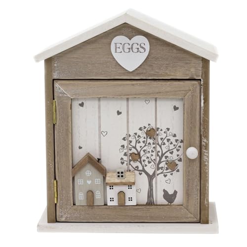 - EGG HOUSE | Crafted in a shabby chic style, this wooden egg house features adorable wooden houses and hearts on the front, creating a whimsical and inviting atmosphere in your kitchen