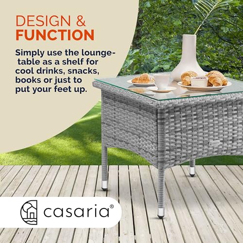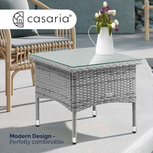 - ELEGANT DESIGN: The 50x50x45cm polyrattan side table by CASARIA offers an ideal storage option next to sun loungers, garden chairs or in a lounge corner. Due to the stylish design, the table can be ideally combined with various furniture.
