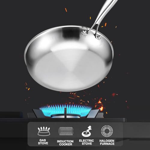 - ●Quick and even heat distribution: Thanks to the three-layer design, this pan heats up 50% faster than conventional cookware, distributing heat evenly across the surface, preventing hotspots, and ensuring precise cooking.