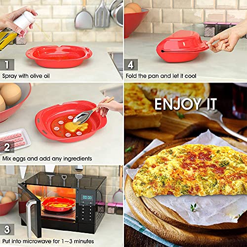 - 【Unique Design】: The microwave oven omelet is easy to fold, easy to store. After a simple fold in half, the silicone omelet can prevent dust and keep food clean. Moreover, it is convenient to carry, stack and store.