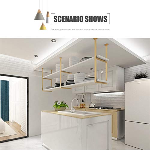 Ceiling-Mounted Pot Rack with Wooden and Metal Tray Holder – Kitchen Pan Hanging Shelf Organizer in White (Size: 120×30×78cm)