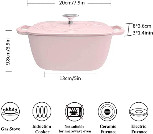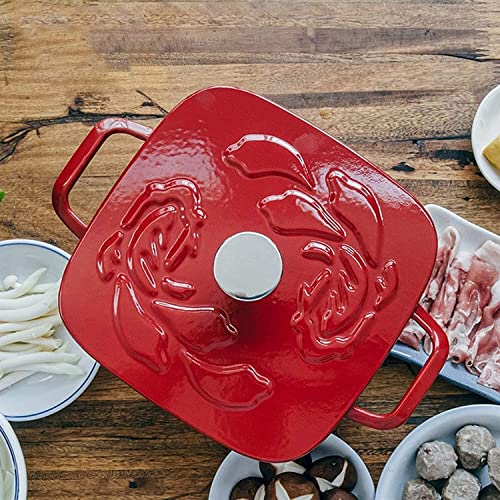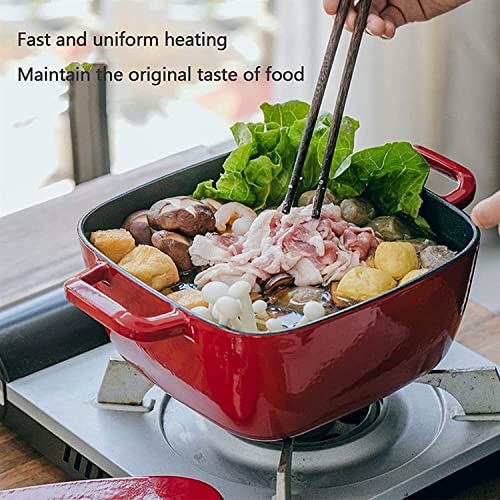 Ceramic Cooking Pot Healthy Pot Cooking Pot Casseroles Enameled Casserole Square Braiser Cast Iron Cookware with Stainless-Steel Knob Nonstick Dutch Oven for Cooking and Baking Red