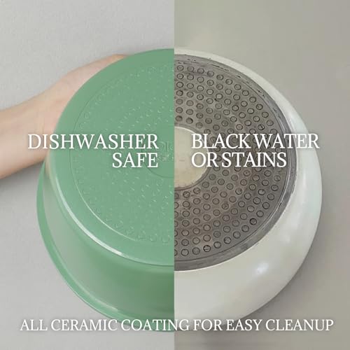 - Make Cleanup a Breeze- With innovative dual-sided coating design, our ceramic cookware set allows food residue to slide off with just an effortless wipe. The ceramic coating on the bottom makes cleanup much easier with simple wipes.It is also dishwasher-safe to free your hands after cooking