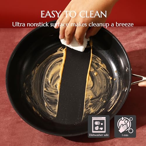 - NEXT‑GEN NONSTICK COATING: Our ceramic pan features an advanced triple-layer ceramic nonstick coating, allowing you to cook more easily. Avoid dry heating, as it can damage the nonstick surface and shorten the pan’s lifespan. Built for durability and excellent food release, these nonstick frying pans withstand oven temperatures up to 250 ℃ (482 °F)