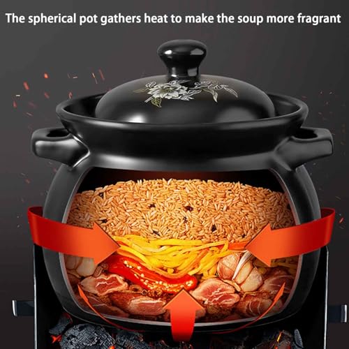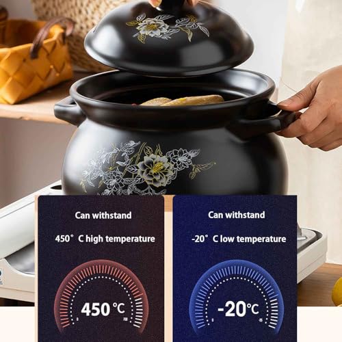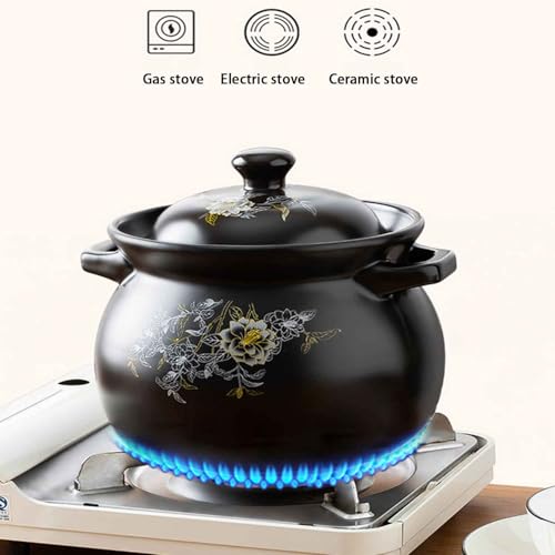 Ceramic Pot with Lids,Clay Cooking Pot,for Shabu Shabu Hot Pot Bibimbap Sauce Pan Milk SteamerBlack,7.5L