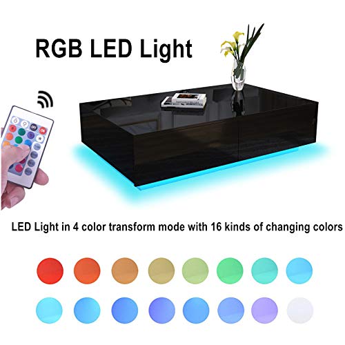 - *16 Colors RGB LED Lights* Our modern coffee table comes with 2.5M LED light strip. With the included remote control, you can adjust among 16 changing colors to create a cozy atmosphere for family and friends gatherings
