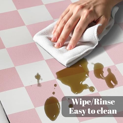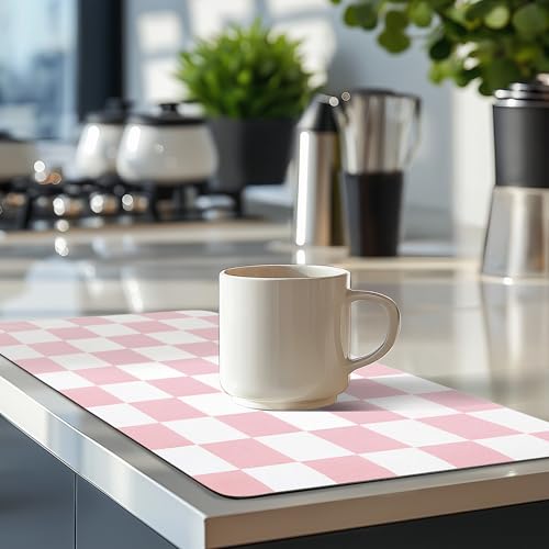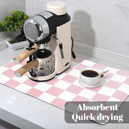 Checkered Dish Drying Mat for Kitchen Counter, Non Slip Coffee Machine Mat Accessories, Super Absorbent Draining Board Mat, Quick Dry Kitchen Mat for Worktop Bar (Pink, 40x60cm)