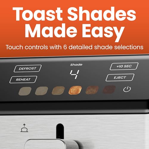 - YOUR PERFECT TOAST: Choose one of 6 touchscreen toaster shade settings for the perfect amount of crunch every time; ideal for lightly toasted sandwiches or some crispy toast with jam as a snack.