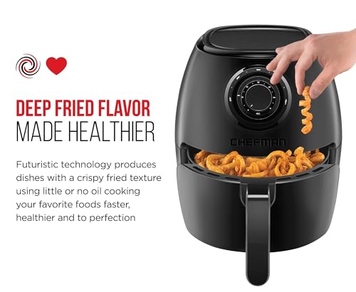 Chefman TurboFry 3.5 Litre Air Fryer Oven w/ Dishwasher-safe Basket and Dual-control Temperature, 1300W Power, 60-minute Timer & 15-cup Capacity, Uses No Oil, BPA-free, Matte Black
