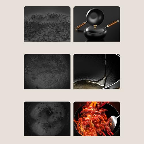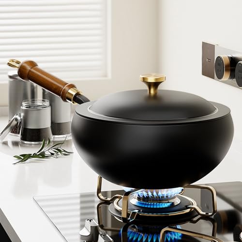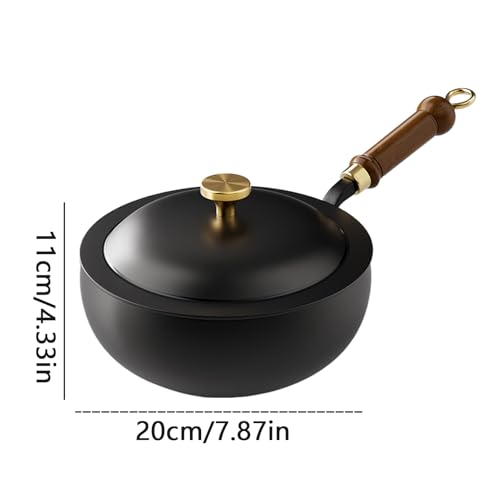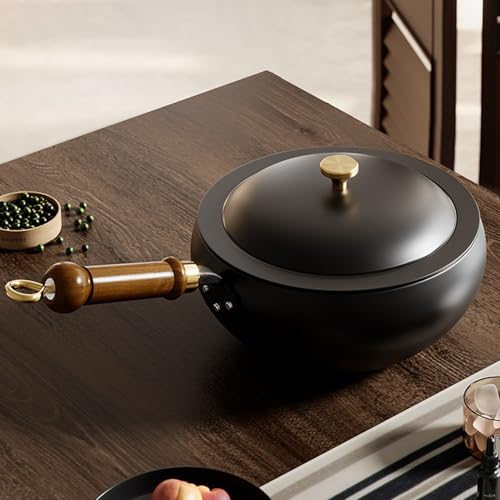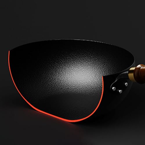 Chinese Wok – Frying, Flat Base, Lightweight Non-Stick Pan Roast with Even Base, Ergonomic Wooden Handle, Ideal for Outdoor Kitchen, Camping Travel or
