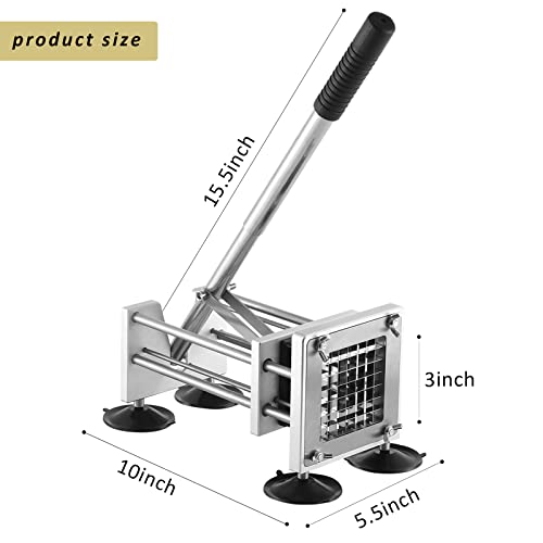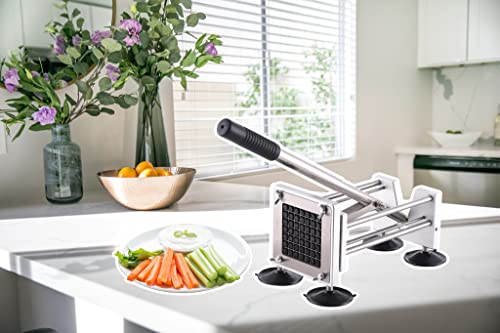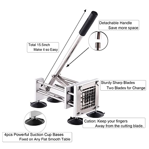 - High Quality: Made of high quality food grade stainless steel with restaurant-grade engineered blades, 4 sturdy suction cup bases and ergonomic design handle, this french fry cutter can be used for years.