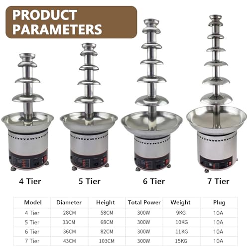 - Constructed from premium food-grade 304 stainless steel, this electric chocolate fountain features a sleek, minimalist design that elegantly showcases a cascading chocolate waterfall, perfect for adding a touch of sophistication to any special event.