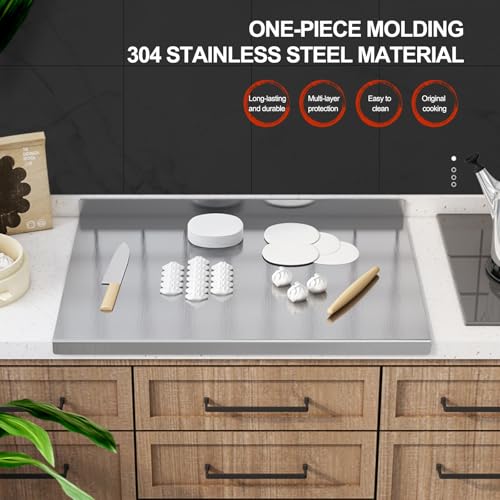 - 【Durable and Non-slip】: Made of durable stainless steel and brushed craftsmanship to avoid bending during use. The edge design makes the large cutting board fit your countertop firmly and seamlessly, and helps stabilize the cutting board. The right-angle edge forms a 90° angle with the countertop, perfectly fitting the kitchen countertop
