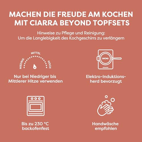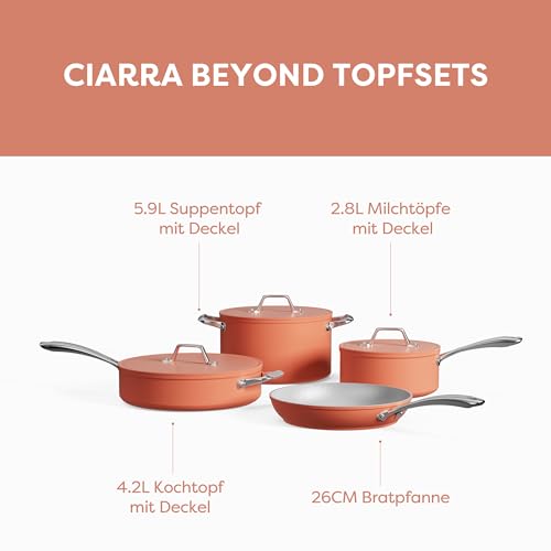 CIARRA Beyond Cookware Set Nonstick Induction Hob Pots and Pans Set with Lids with 24cm Dutch Oven, 26cm Frying Pan, 28cm Saute Pan, 20cm Saucepan,Orange