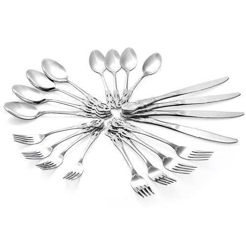 - Premium Quality: Made of stainless steel, our sliver forks spoons and knives set are anti-rust and corrosion-resisted. And the silver color as well as the shape can be kept for a long time. It is durable in use.