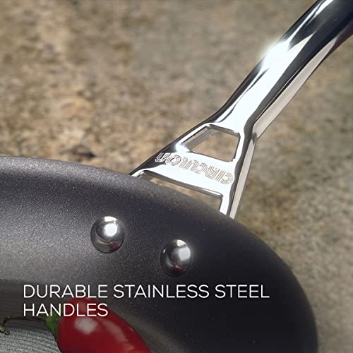 Circulon Infinite Induction Wok Non Stick 36cm – Large Wok with Stainless Steel Lid, Base & Handles, Premium Dishwasher Safe, Heavy Gauge Hard Anodised Cookware, Black