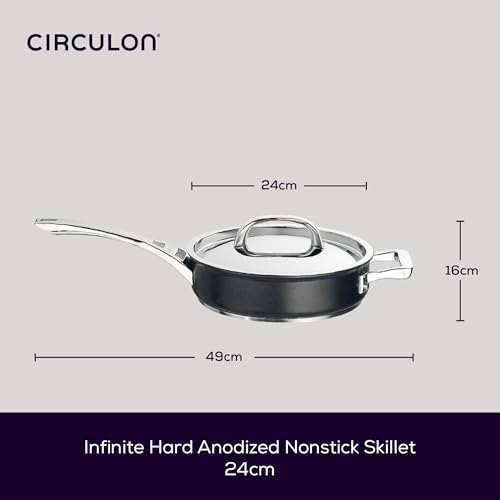 Circulon Infinite Saute Pan with Lid 24cm – Non Stick Induction Suitable Deep Frying Pan with Stainless Steel Lid, Base & Handles, Premium Dishwasher Safe, Heavy Gauge Hard Anodised Cookware