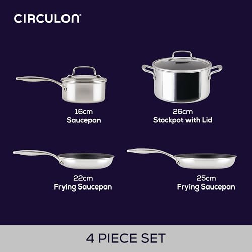 Circulon Scratch Defense Stainless Steel Pan Set: 4 Piece Induction Hob Pan Set with Extreme Non Stick, Induction & All Hob Suitable