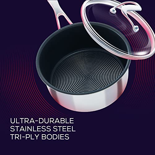 Circulon SteelShield C Series Stainless Steel Saucepan Set of 3, 16/18/20cm – Induction Saucepans with Lids – Hybrid Non Stick, Metal Utensil Safe & Dishwasher Safe Cookware