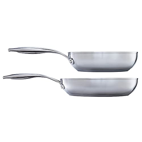 Circulon SteelShield Stainless Steel Frying Pan Set of 2 – Induction Frying Pan Set with Hybrid Non Stick 20cm & 26cm, Metal Utensil Safe and Dishwasher Safe Cookware