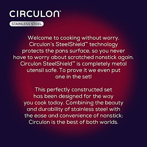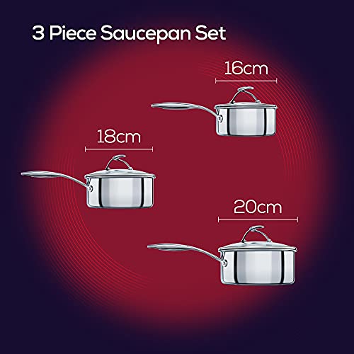 Circulon SteelShield Stainless Steel Saucepan Set of 3 – Induction Suitable Saucepans 16/18/20cm with Hybrid Non Stick, Glass Lids & Stay Cool Handles, Dishwasher Safe Cookware