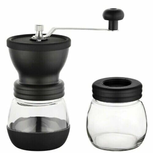 Manual Coffee Grinder Adjustable Ceramic Burr Handheld Bean Mill with Glass Storage Jar and Cleaning Brush Portable Coffee Bean Grinder for Espresso French Press Home Kitchen Office