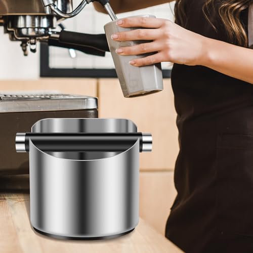 - High Quality Material: This coffee knock box is made of high quality stainless steel, and not easy to deform. The removable knocking bar is wrapped by stainless steel and rubber, it won't scratch your coffee knock box, also can prevent coffee spillage, safe to use