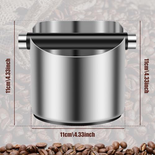 Coffee Knock Box, Coffee Grounds Knock Box, Stainless Steel Non Slip Espresso Grounds Container, Beveled Design Large Capacity Espresso Dump Bin with Rubber Ring and Removable Metal Knock Bar (11cm)