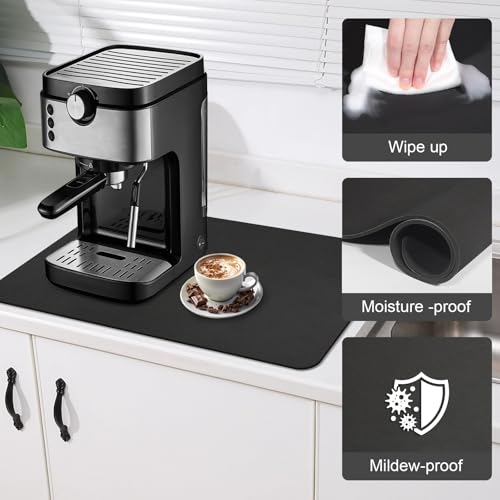 Coffee Mat Super Absorbent Drying Mat Coffee Bar Accessories Match with Waterproof Rubber Backing Fit Under Coffee Maker Coffee Machine Coffee Pot Coffee Bar Accessories (Black, 30×50cm)