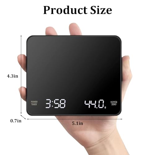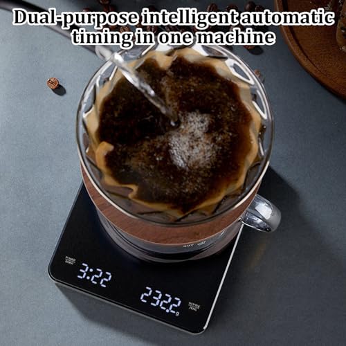 - 【Has aBuilt-in timer】: Our coffee scales with timer has a built-in timer function that can accurately calculate the brewing time of coffee, ensuring that each brewing time is just right, allowing you to easily master the taste and aroma of coffee. As long as you set the timer, espresso scale will automatically start timing to help you achieve precise coffee control.