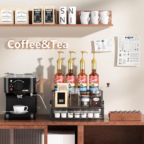 • Space Saving – This syrup stand provides extra storage space for your coffee nook to store coffee stuff, keeps your coffee area neatly organized. Save tabletop space and create a clean and comfortable coffee station for you