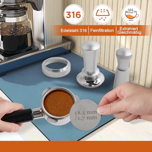 - Coffee Tamper 58mm Set:A professional espresso tools barista set includes a 58mm coffee tamper, espresso wdt tool, 58mm dosing funnel and 58mm Puck Screen. This stainless steel coffee tamper is not only durable but also designed to be rust-proof, ensuring the healthiness of your coffee-making routine.