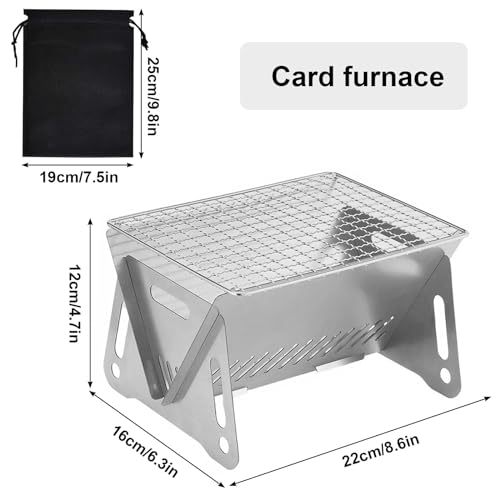 Collapsible Campfire Grill Camping Fire Pit, Foldable Wood Burning Charcoal Grill with Bag, Assemblable Removable Stove with Grill Mesh, Portable Camping Grill for Travel, Outdoor Cooking