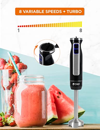 COMMERCIAL CHEF Immersion Blender, Multi-Purpose Immersion Hand Blender with Stainless Steel Blade, Handheld Mixer with 8 Variable Speed Options