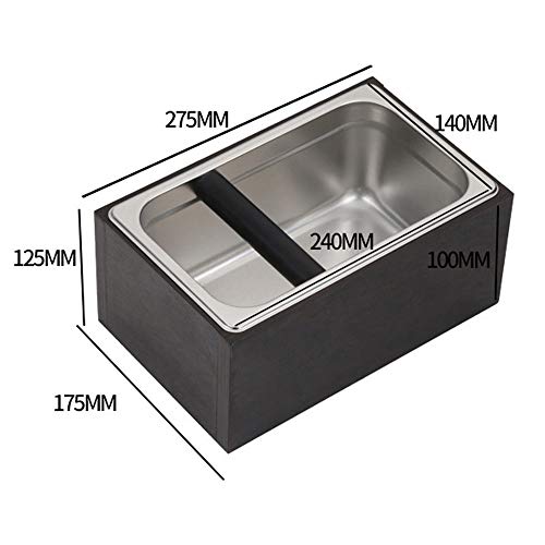 Commercial Coffee Knock Box 3L Stainless Steel UK, Removable 0.79gal Grounds Bin Rubber Damped Bar, Composite Wood Base Cafe Style Waste Bin