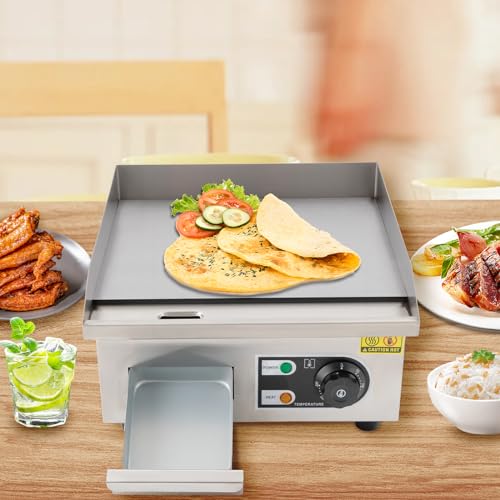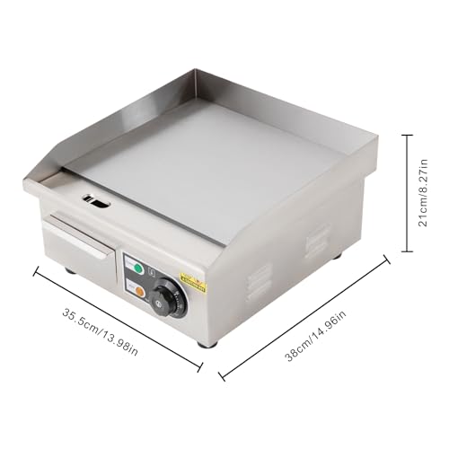 Commercial Electric Griddle, Countertop Flat Top Griddle, 14 Inch Electric Frying Pan, with Thermostatic Control, Stainless Steel Grill, 14 Inch Electric Griddle, 2000W, for Restaurants, Food