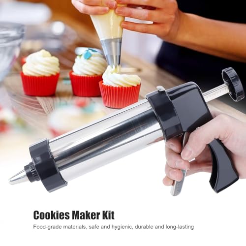 - 👉 Food Grade : Cookie press set adopts food‑grade stainless steel and plastic,durable and can directly contact food.