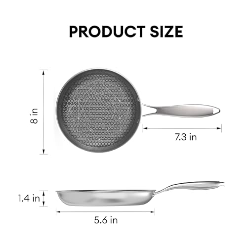 - 【Hybrid 8-Inch Nonstick Pan – Compact & Space-Saving】Your go-to small skillet for omelets, grilled cheese, or side dishes! This 8-inch nonstick pan fits in tight kitchens and cooks single portions perfectly.