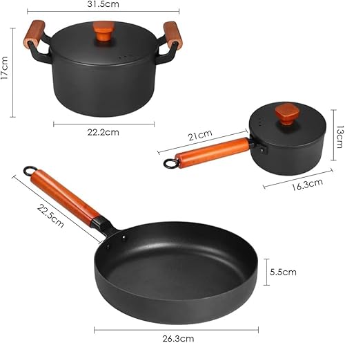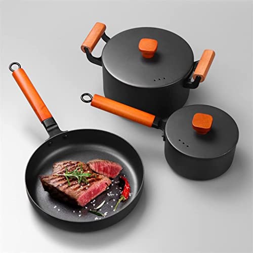Cooking Pot, Cookware Set Pots and Pans Set 3Pcs Cookware Set Soup Pot Milk Pan with Lid Frying Pan Wrought Iron Non-Stick Cooking Pot Set Kitchen Cooking Pot Set Cooking Pan Set