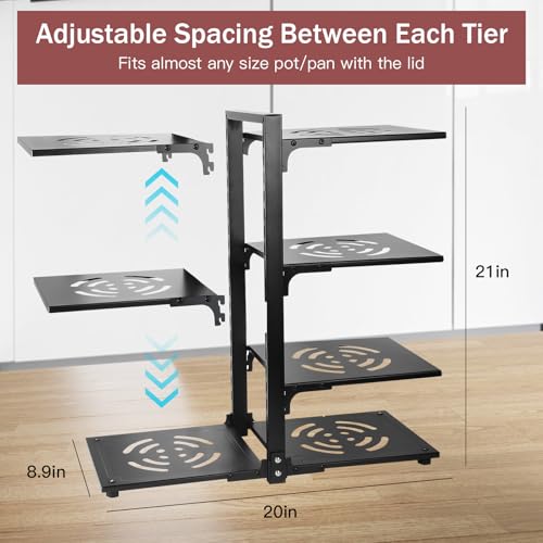 - Adjustable Shelves – Multi-functional adjustable layer design, fit all sizes of pot pans. Bilateral snap-in installation, flexible adjustment of layer height spacing according to the actual height needs of pots and pans, adjust the number of layers on each side.